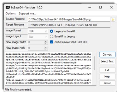 Die Anwendung btBase64 konvertiert Bilder der folgenden Typen in das Base64-Format und umgekehrt: